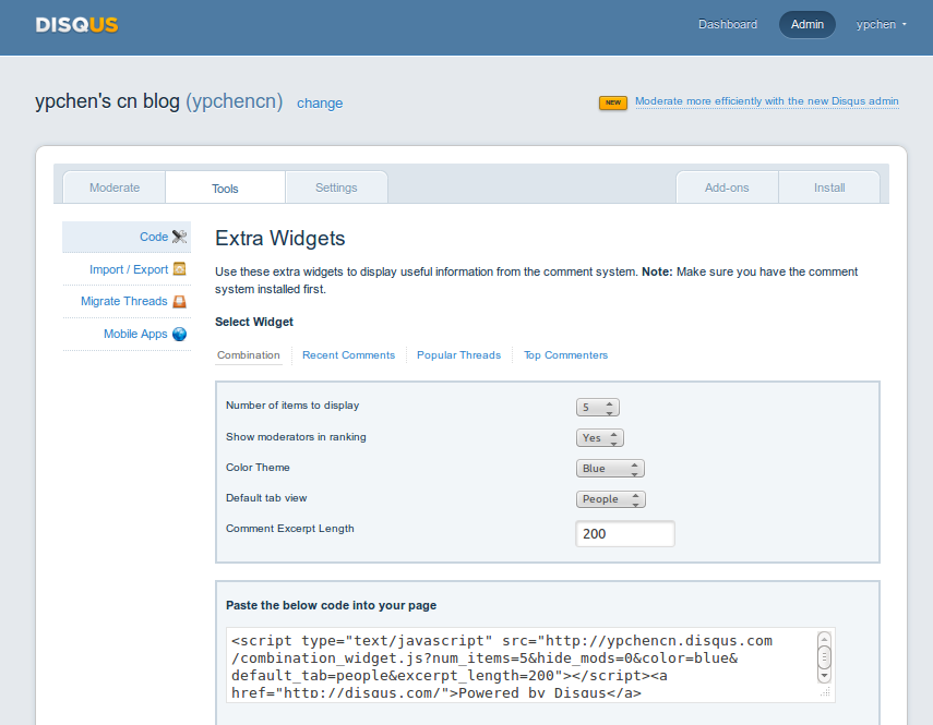 <sectionid="comment_sidebar"><h1>近期评论</h1><script type="text/javascript"src="http://ypchencn.disqus.com/recent_comments_widget.js?num_items=5&hide_avatars=0&avatar_size=32&excerpt_length=20"></script><ahref="http://disqus.com/">Powered by Disqus</a></section>